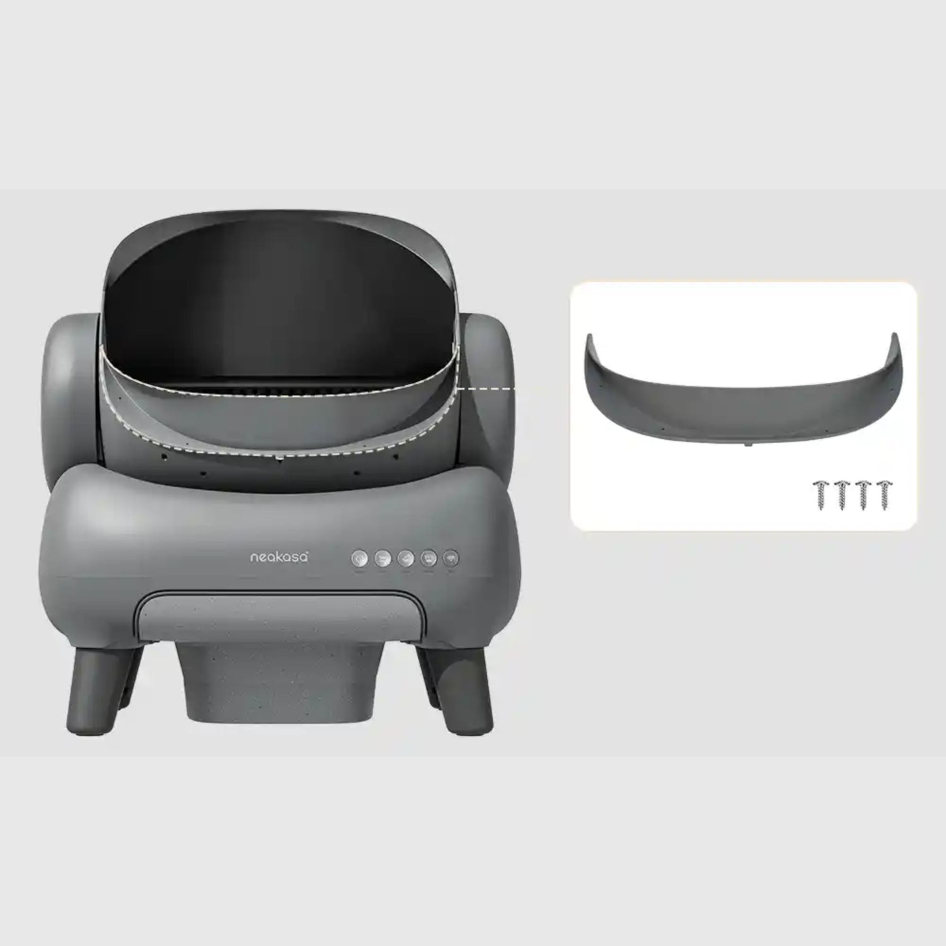 The Neakasa M1 Fence is an accessory designed for the M1 (or M1 Lite) litter system that helps reduce mess and keep the surrounding area cleaner. It prevents playful cats from kicking litter out of the box, minimizes scatter, and keeps floors tidier. The fence is easy to install and remove without tools and is designed so cats can still enter/exit comfortably.